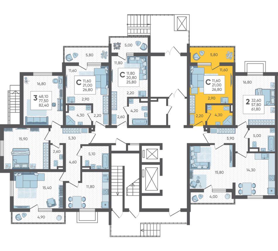2-комн. | 59 - 68 м² | 8,7 - 10,9 млн ₽ |