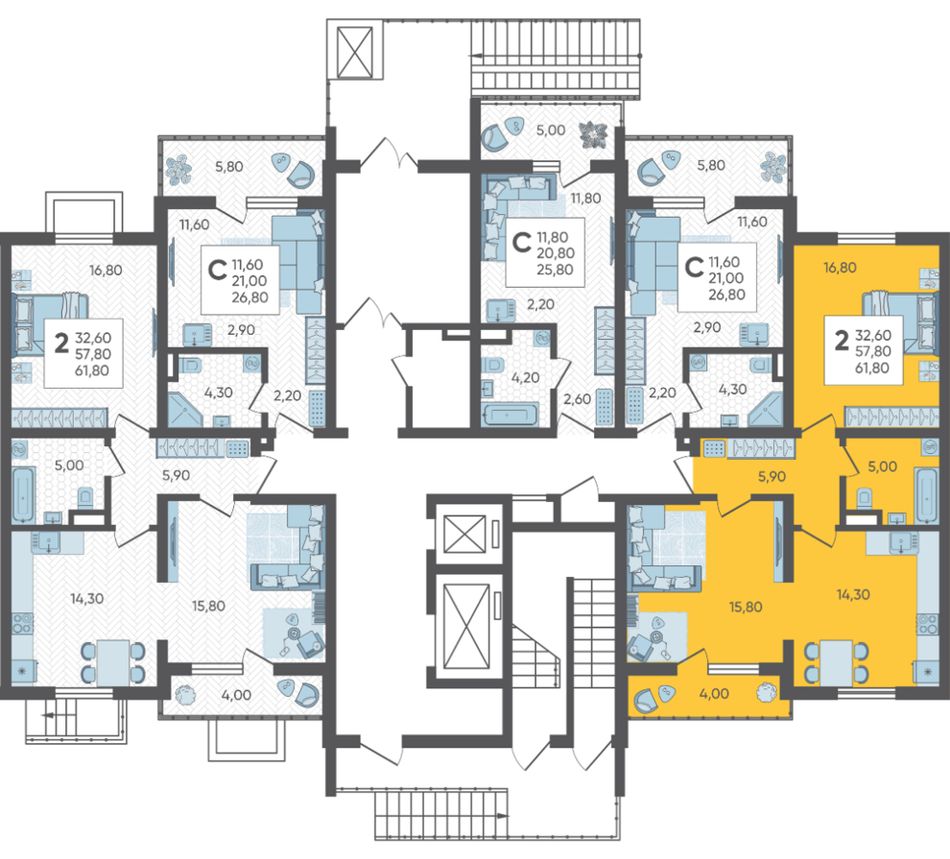 | 2-комн. | 60 - 62 м² | 16,7 - 17,3 млн ₽ |