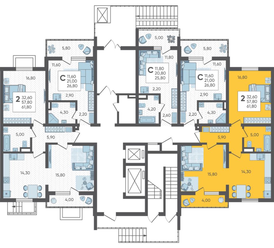 | 2-комн. | 60 - 68 м² | 8,4 - 9,6 млн ₽ |
