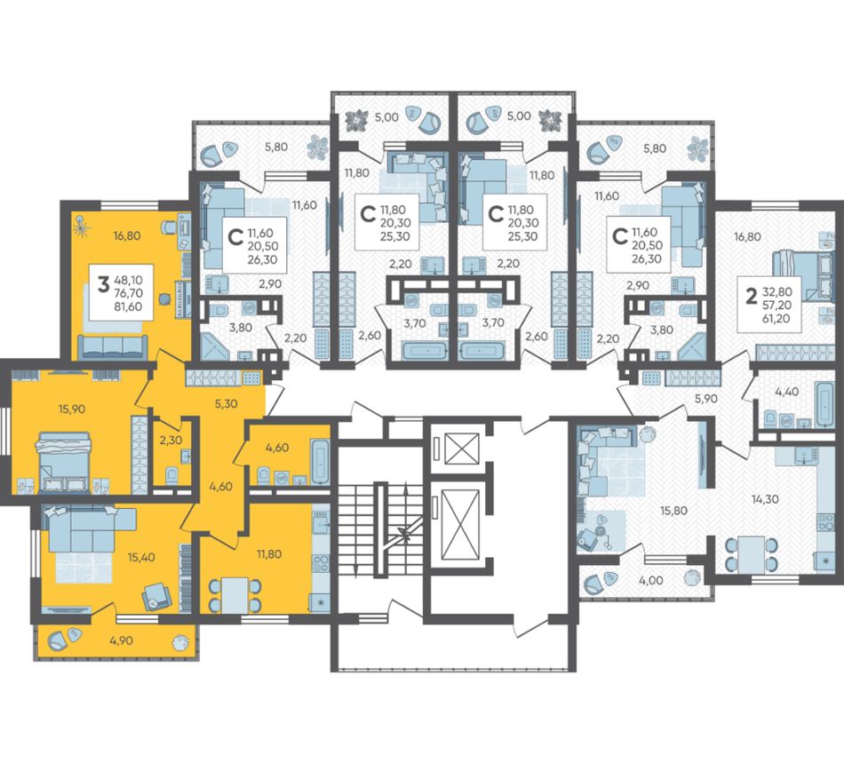 | 3-комн. | 78 - 79 м² | 8,8 - 9 млн ₽ |