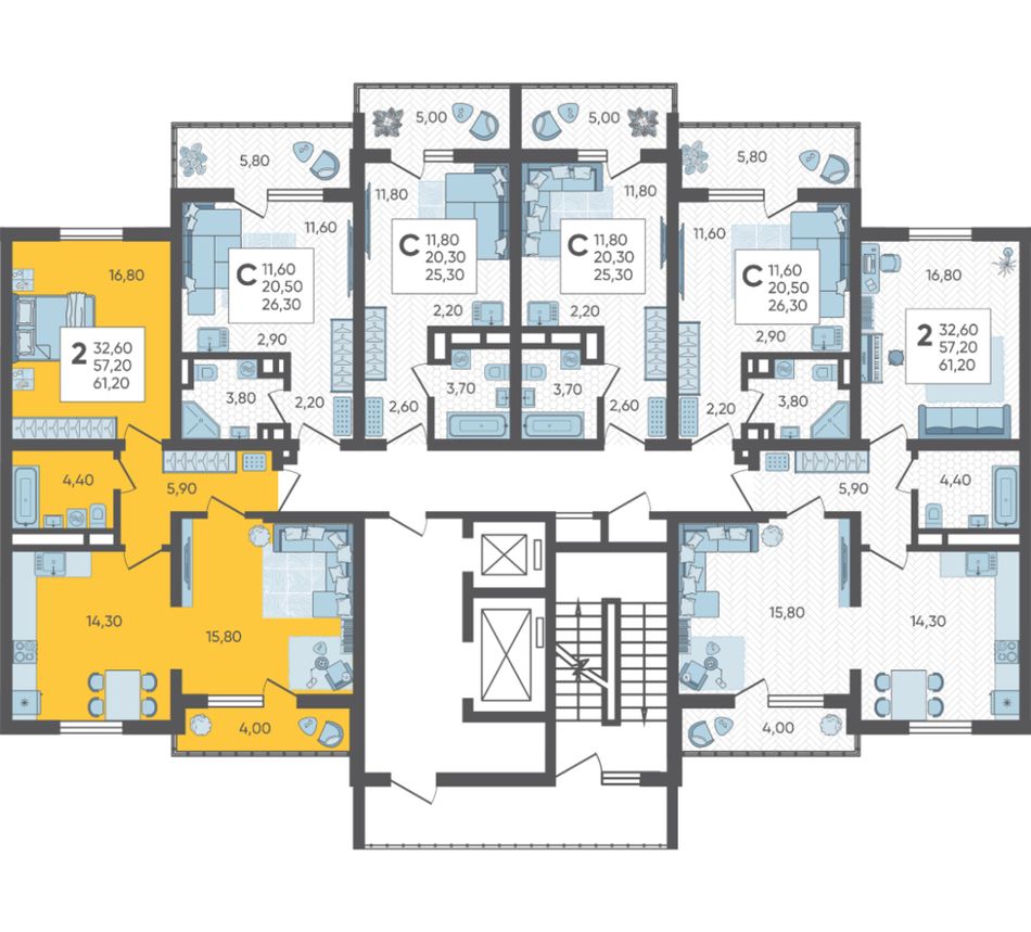 | 2-комн. | 61 м² | 8,5 - 8,7 млн ₽ |
