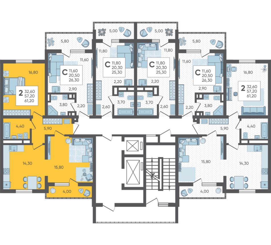 | 2-комн. | 60 - 62 м² | 16,3 - 19,5 млн ₽ |