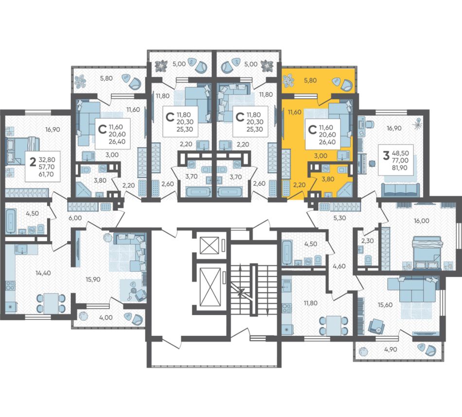 | 3-комн. | 78 - 79 м² | 8,8 - 9 млн ₽ |