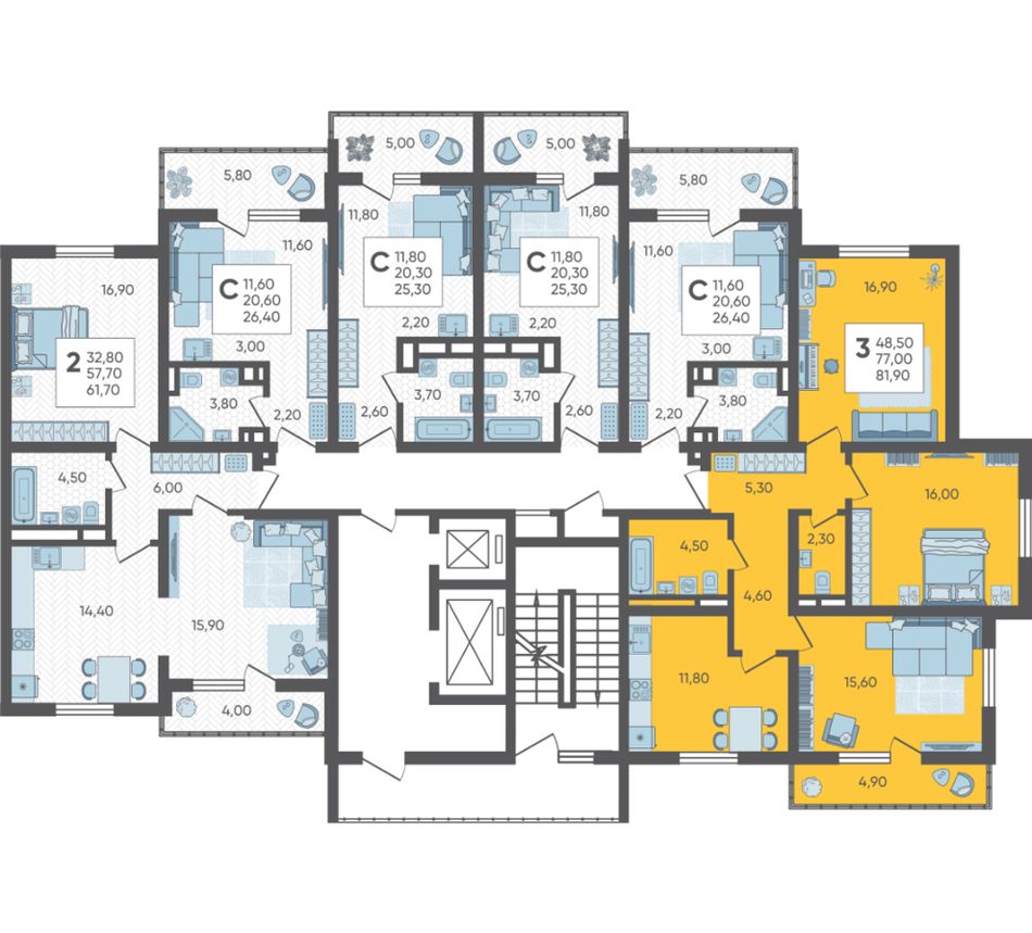 | 3-комн. | 78 - 79 м² | 8,8 - 9 млн ₽ |