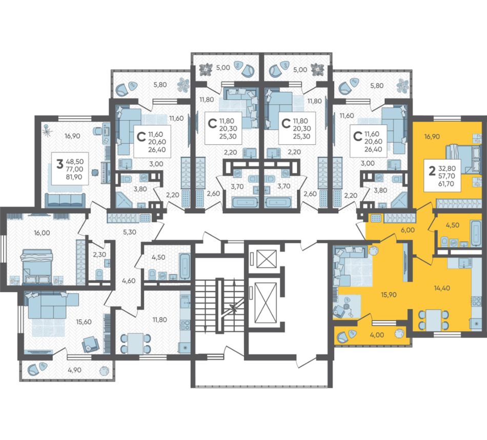 | 3-комн. | 78 - 79 м² | 8,8 - 9 млн ₽ |
