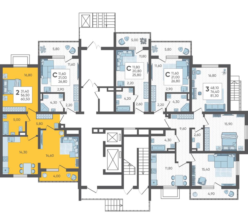 | 3-комн. | 80 - 82 м² | 22,1 - 24,7 млн ₽ |