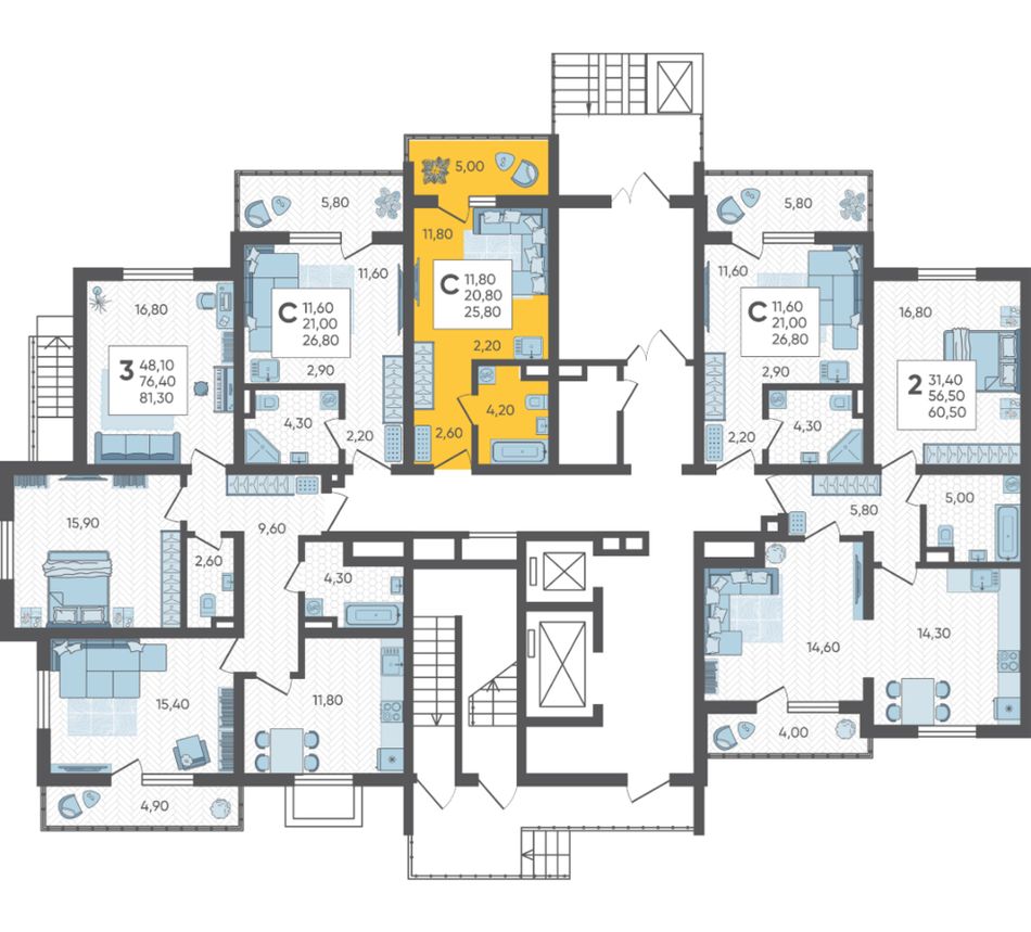 | 3-комн. | 78 - 79 м² | 8,8 - 9 млн ₽ |
