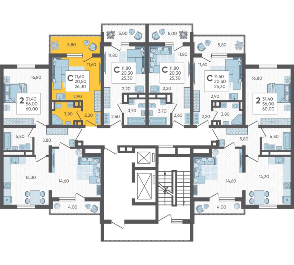 2-комн. | 59 - 68 м² | 8,7 - 10,9 млн ₽ |