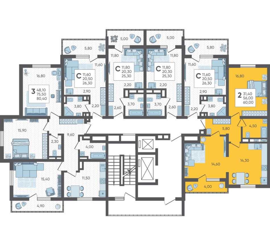 | 3-комн. | 78 - 79 м² | 8,8 - 9 млн ₽ |