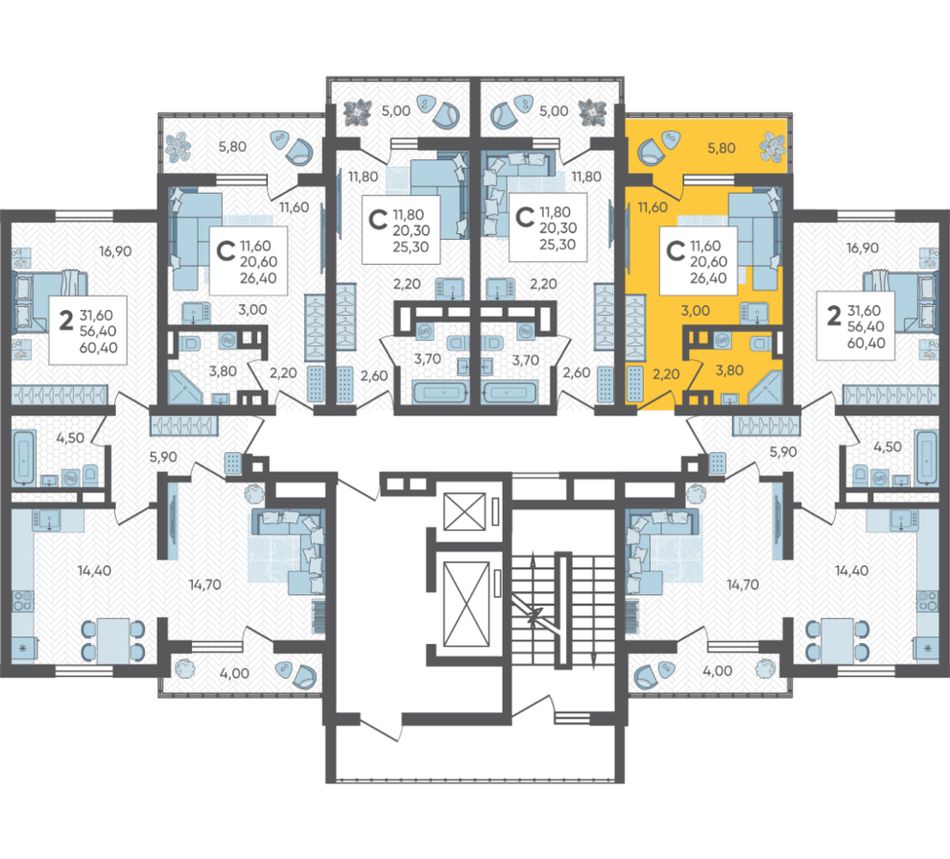 | 2-комн. | 61 - 68 м² | 8,7 - 9,6 млн ₽ |
