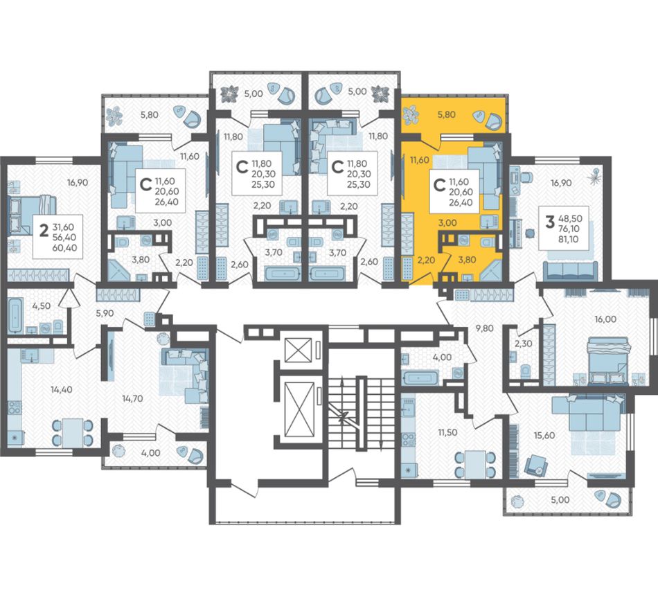 | 3-комн. | 78 - 79 м² | 8,8 - 9 млн ₽ |