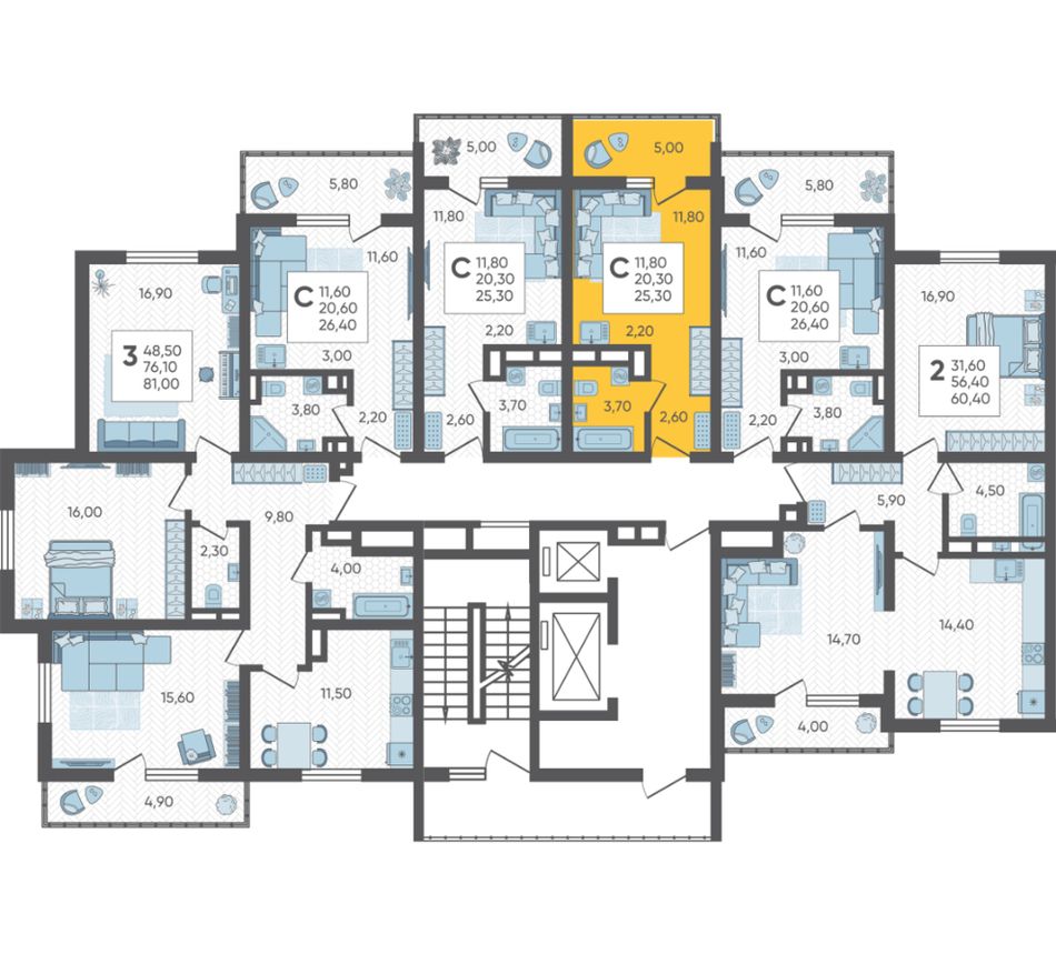 | 3-комн. | 78 - 79 м² | 8,8 - 9 млн ₽ |