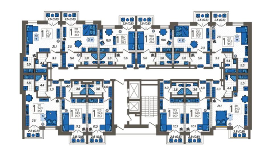 | 1-комн. | 33 - 38 м² | 4,9 - 6 млн ₽ |