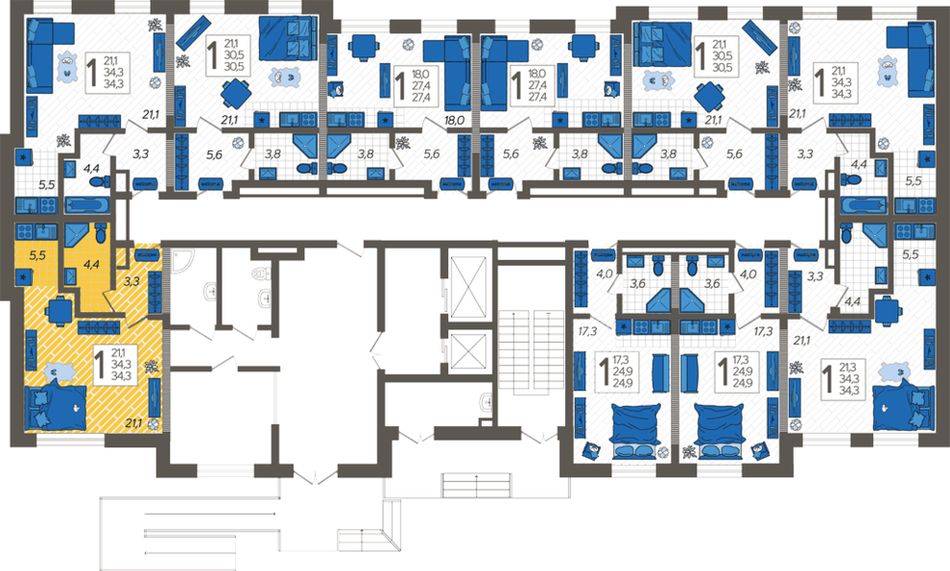 | 1-комн. | 33 - 38 м² | 4,9 - 6 млн ₽ |