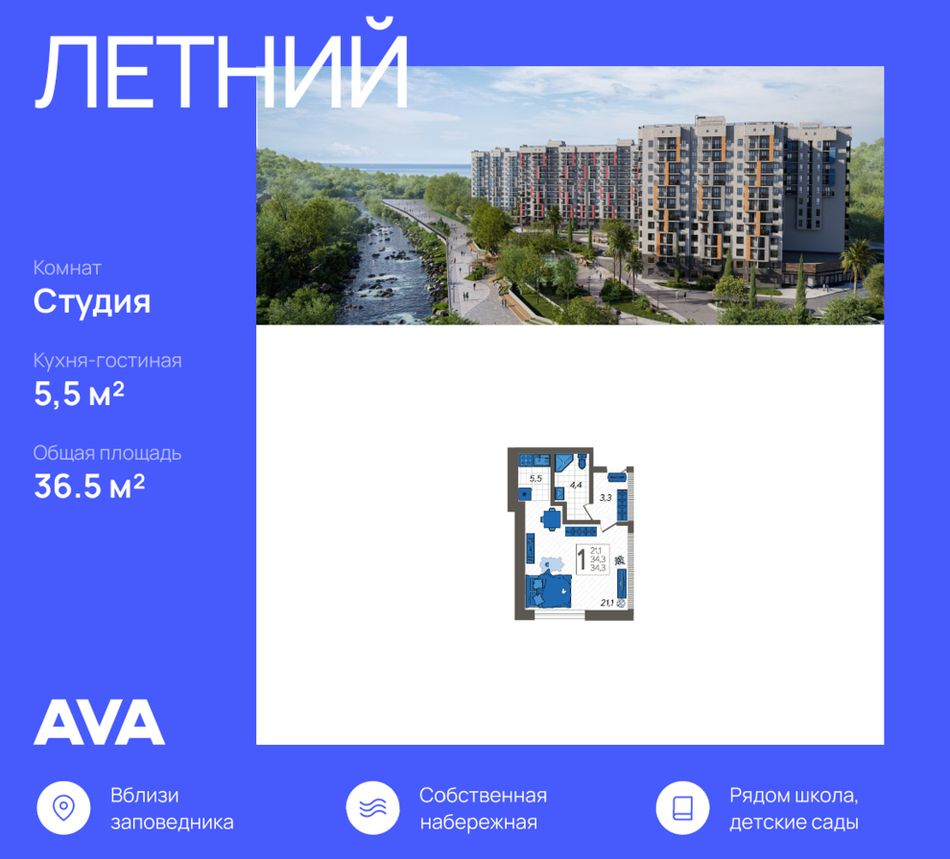 Жилой комплекс "Летний" расположен в ущелье реки Кудепста. В пешей минутной доступности – детские сады и школы. Удобный выезд к железнодорожному вокзалу и аэропорту. За 15 минут можно доехать до Олимпийского парка. ЖК “Летний” - это комплексная застройка из семи 12-этажных домов, который находится в долине реки Кудепста, с собственной набережной, видом из окон на море и горы, многоуровневым паркингом с эксплуатируемой кровлей, современными детскими и спортивными площадками. Рядом расположен заповедник, где берут начало туристические тропы на самые красивые водопады региона, единственная в России тисо-самшитовая роща.