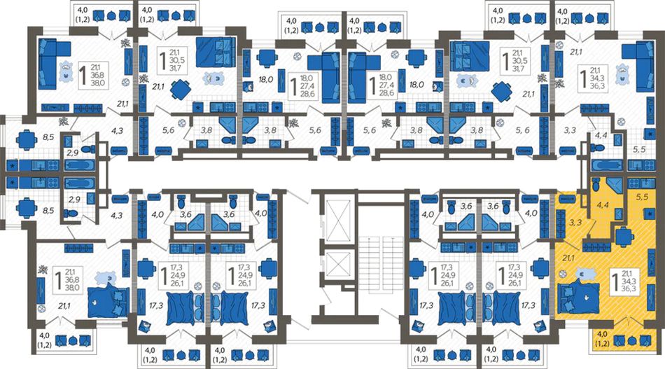 | 1-комн. | 33 - 38 м² | 4,9 - 6,1 млн ₽ |