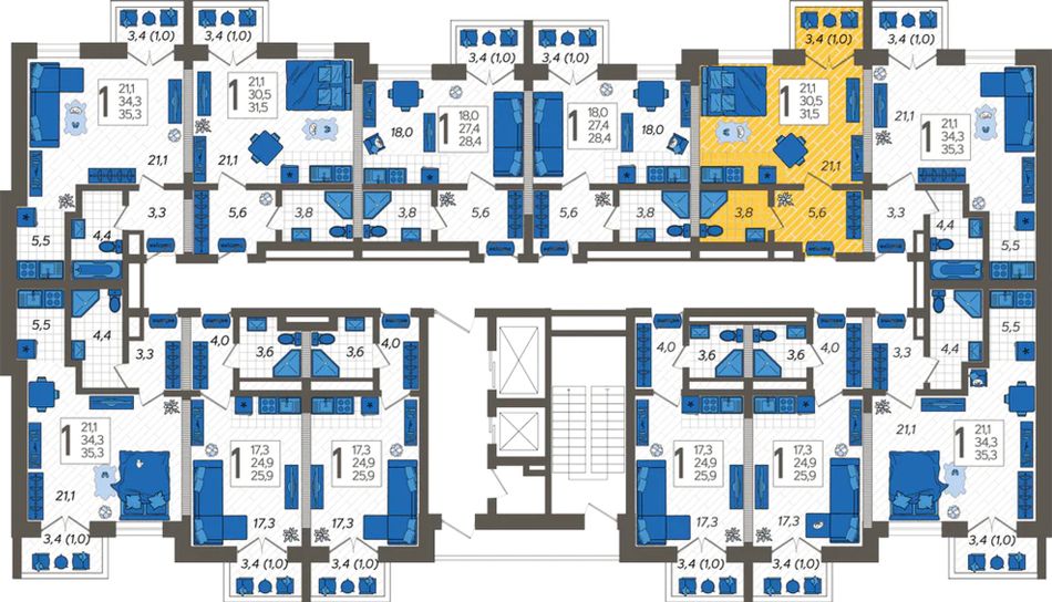 | 1-комн. | 33 - 38 м² | 4,9 - 6,1 млн ₽ |