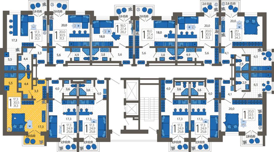 | 1-комн. | 33 - 38 м² | 4,9 - 6 млн ₽ |