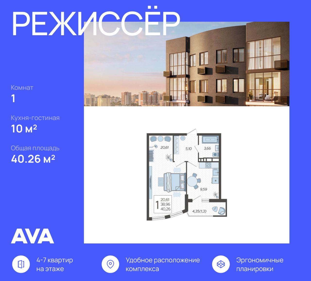 1-комнатная — 40,26 м² 21/21 эт. в Режиссёр