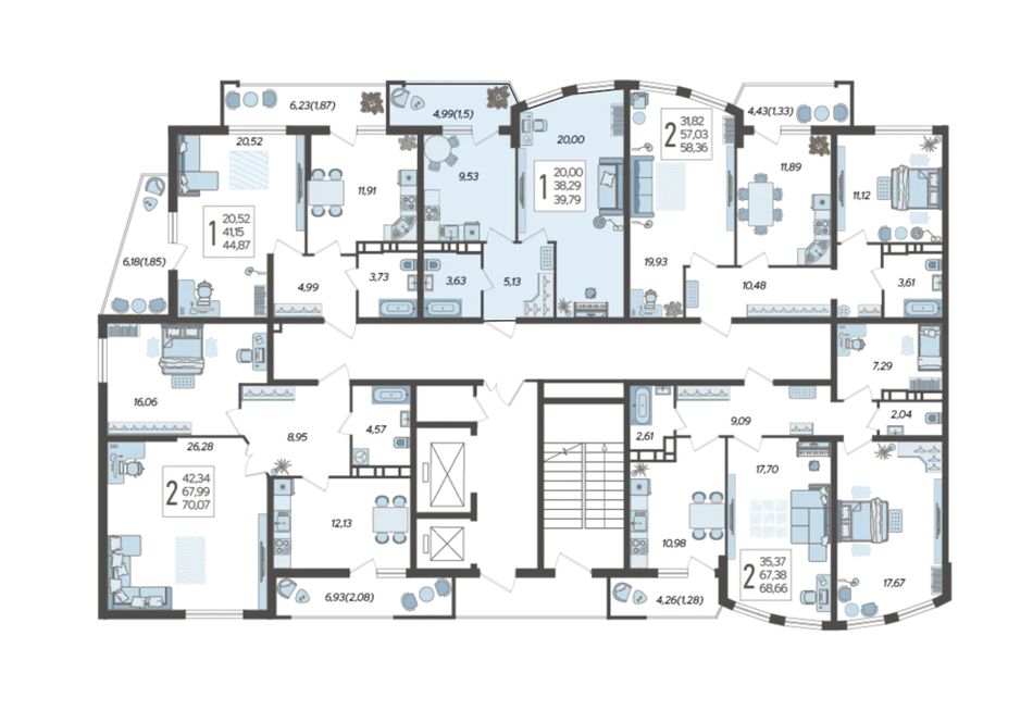 1-комн. | 40 - 58 м² | 7,2 - 7,9 млн ₽ |