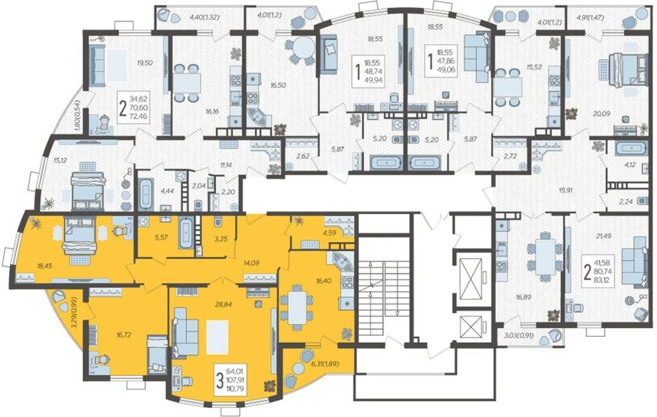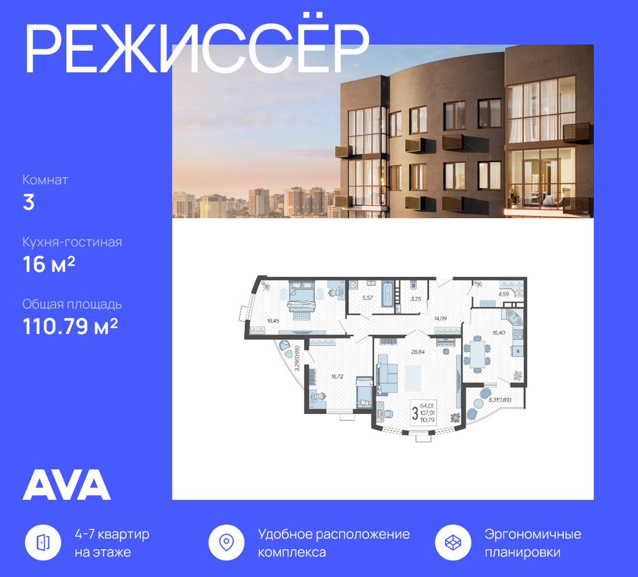 3-комнатная — 110,79 м² 3/21 эт. в Режиссёр