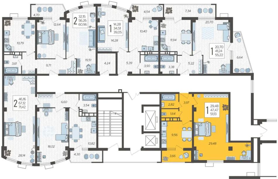 1-комнатная — 51,13 м² 12/14 эт. в Режиссёр