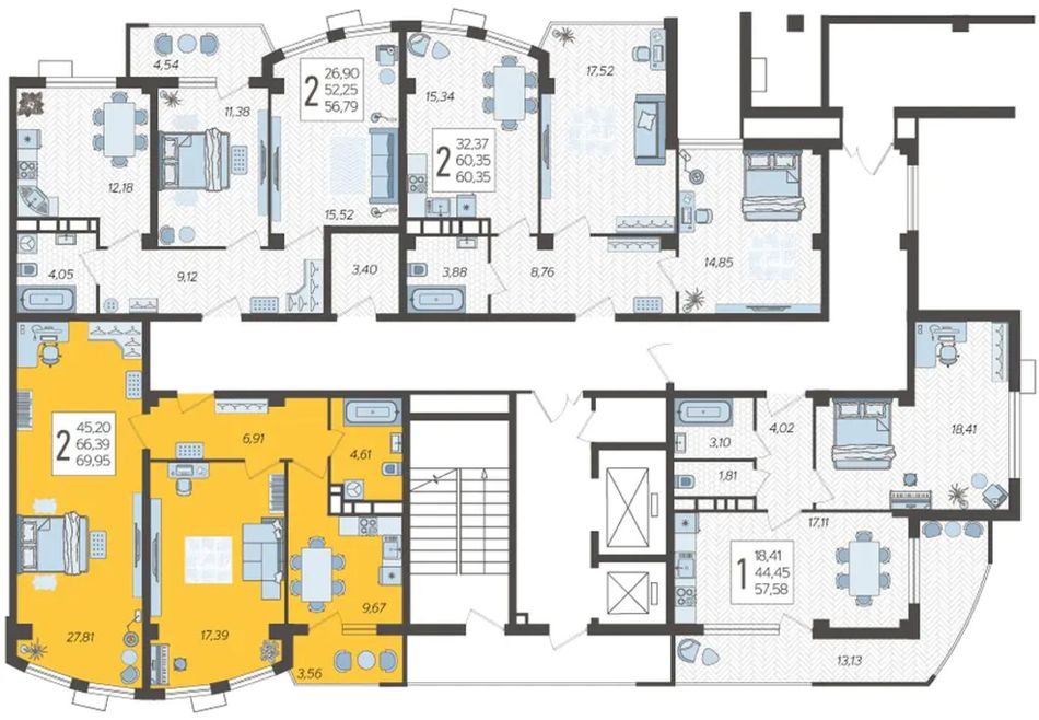 2-комнатная — 69,95 м² 12/14 эт. в Режиссёр