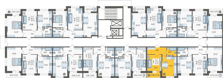 1-комнатная — 35,75 м² 8/12 эт. в Смородина