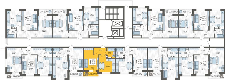1-комнатная — 32,95 м² 11/16 эт. в Смородина