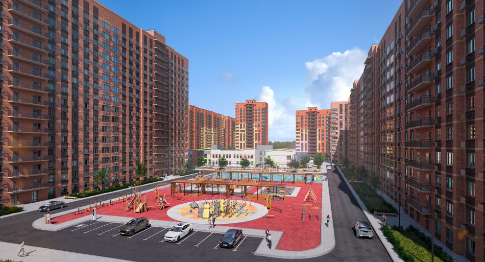 Яркие фасады с благоустроенной территорией, детские и спортивные площадки на стилобате, трехуровневый подземный паркинг и апарт-отель на тер...