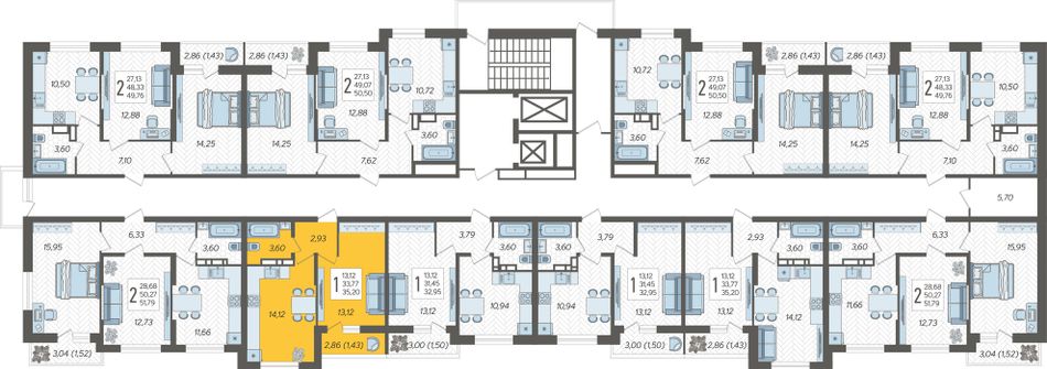 | 1-комн. | 40 - 58 м² | 7,2 - 7,9 млн ₽ |