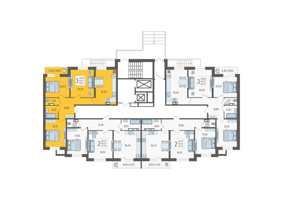 | 3-комн. | 68 - 74 м² | 8,2 - 8,9 млн ₽ |
