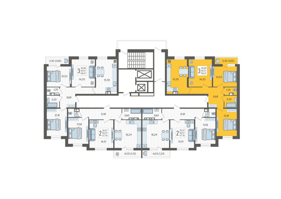 Продаётся 3-комнатная квартира №37 в ЖК «Смородина» (Корпус 19, Секция 1), на 10 этаже 12-этажного дома, срок сдачи: 2 кв. 2028, общей площадью 68,22 кв. м. Без отделки.
