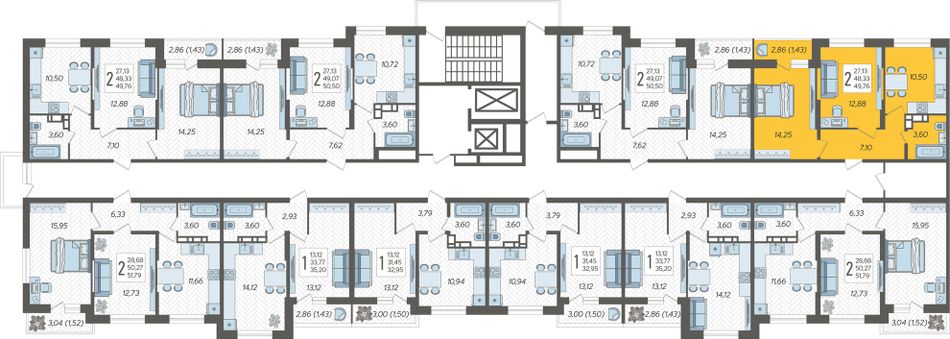 2-комнатная — 49,76 м² 13/16 эт. в Смородина