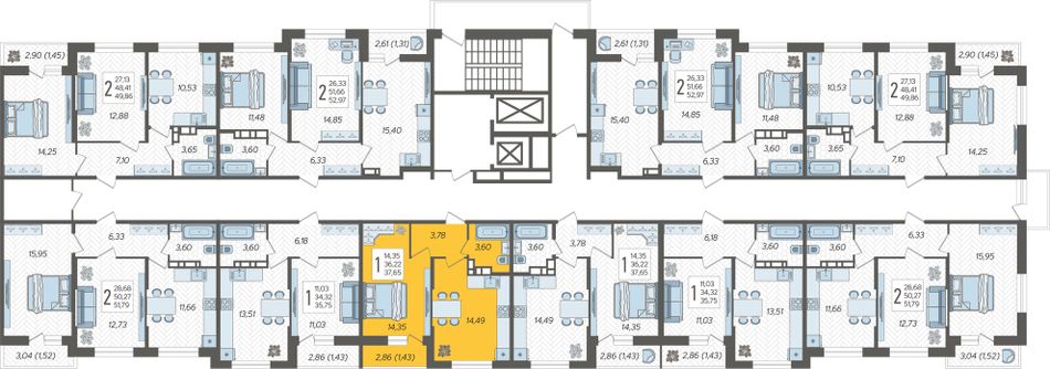 Продаётся 1-комнатная квартира №86 в ЖК «Смородина» (Корпус 18, Секция 1), на 9 этаже 12-этажного дома, срок сдачи: 2 кв. 2028, общей площадью 37,65 кв. м. Без отделки.