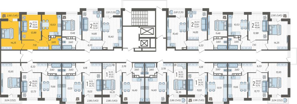 2-комнатная — 49,86 м² 9/12 эт. в Смородина