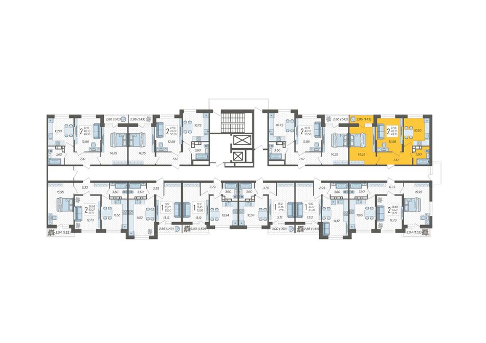 Продаётся 2-комнатная квартира №122 в ЖК «Смородина» (Корпус 20, Секция 1), на 13 этаже 16-этажного дома, срок сдачи: 2 кв. 2028, общей площадью 49,76 кв. м. Без отделки.