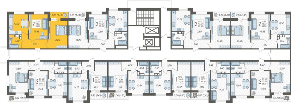 2-комнатная — 49,76 м² 15/16 эт. в Смородина