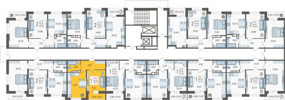 Продаётся 1-комнатная квартира №347 в ЖК «Смородина» (Корпус 18, Секция 3), на 11 этаже 12-этажного дома, срок сдачи: 2 кв. 2028, общей площадью 35,75 кв. м. Без отделки.