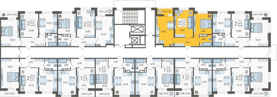 2-комнатная — 52,97 м² 11/12 эт. в Смородина