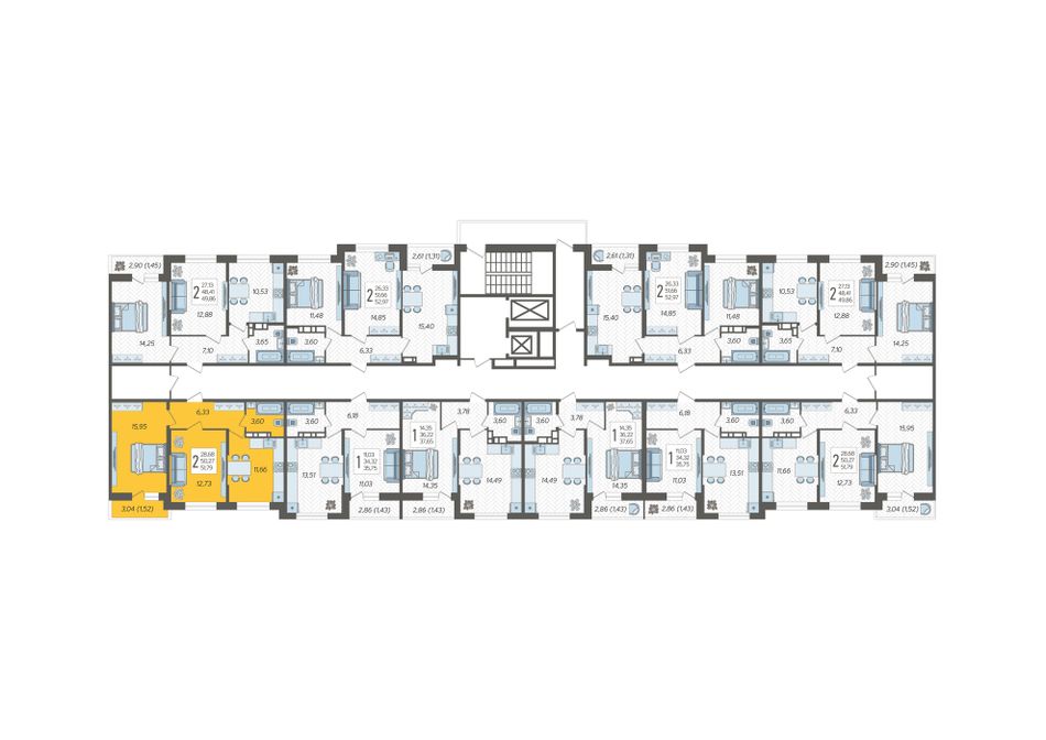 3. 2-комнатная, 51,79 м²