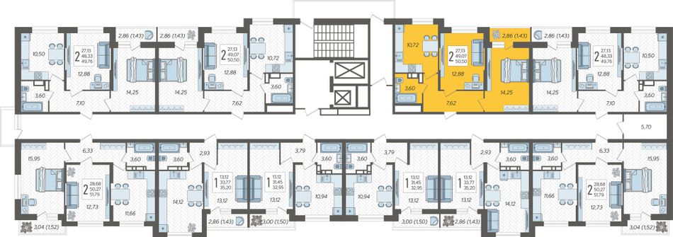 2-комнатная — 50,5 м² 14/16 эт. в Смородина
