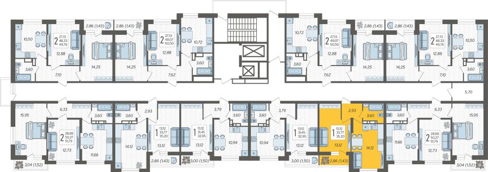 Продаётся 1-комнатная квартира №274 в ЖК «Смородина» (Корпус 12, Секция 2), на 14 этаже 16-этажного дома, срок сдачи: 4 кв. 2026, общей площадью 35,2 кв. м. Без отделки.