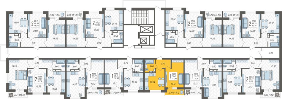 1-комнатная — 32,95 м² 14/16 эт. в Смородина