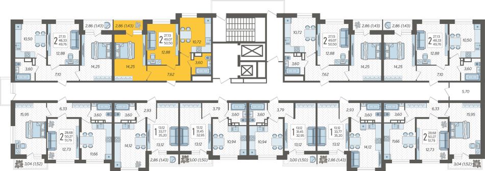 2-комнатная — 50,5 м² 16/16 эт. в Смородина