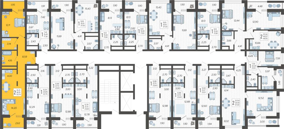 2-комнатная — 50,76 м² 3/19 эт. в Кислород