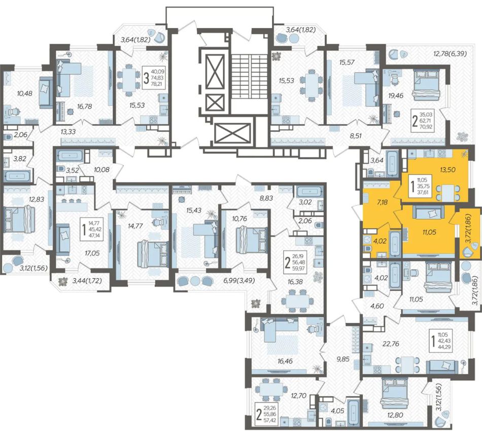 | 3-комн. | 68 - 74 м² | 8,2 - 8,9 млн ₽ |