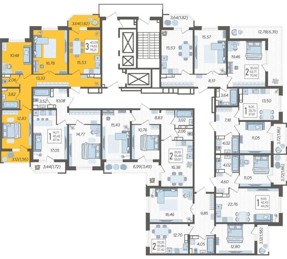 | 3-комн. | 78 - 79 м² | 8,8 - 9 млн ₽ |
