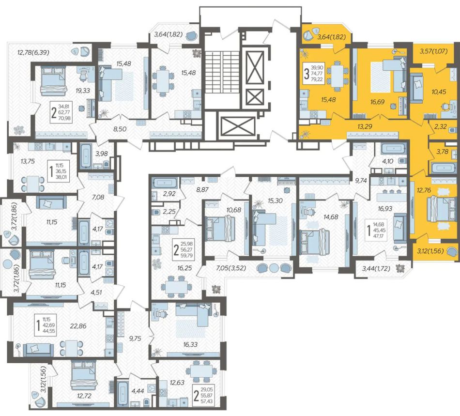 | 3-комн. | 78 - 79 м² | 8,8 - 9 млн ₽ |