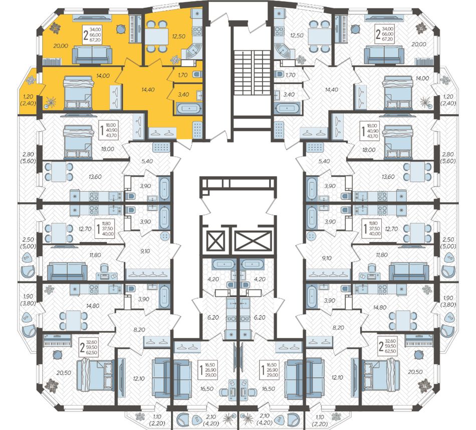 | 1-комн. | 40 - 58 м² | 7,2 - 7,9 млн ₽ |